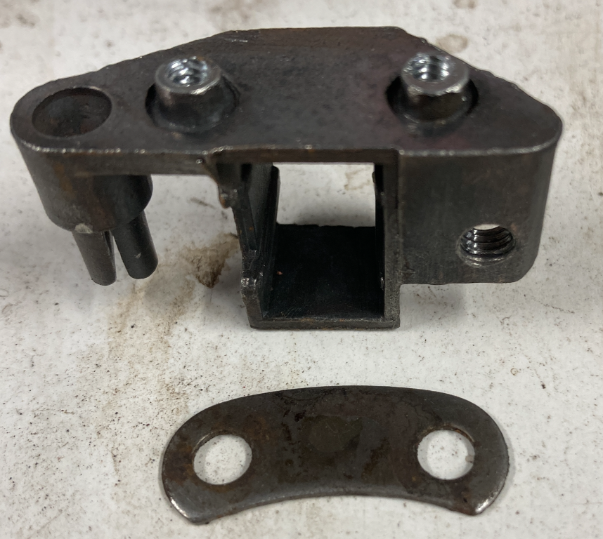 For the brush holder, its a delicate operation. First you carefully grind off the back of the holder rivets making sure when you pop the holder out you save the metal backing plate that invariably goes zinging across the floor and behind your machines. Also, leaving part of the post intact gives you a "center punch" you can use on the next step.