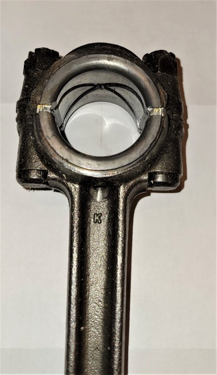 I know that re-babbitted connecting rods are scarce these days, so when I heard that they were available from a reputable parts supplier, I ordered a set, and they arrived today. However, they are not Ford rods. The only mark anywhere is a letter K near the bottom of the rod. No Ford script nor familiar forge trademarks anywhere on neither the rod nor cap.