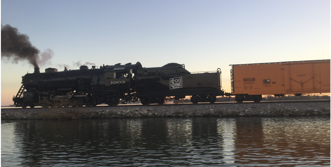 Built in 1913 for the Minneapolis, St. Paul and Sault Ste. Marie Railroad, this 2-8-2 Mikado type locomotive worked for 46 years, then was retired to a park display in the city of Superior, Wisconsin in 1959. After purchase by a group of railroad enthusiasts, the 1003 was restored from 1993-1996. It is now operated by the Steam Locomotive Heritage Foundation for chartered excursions and other special events.