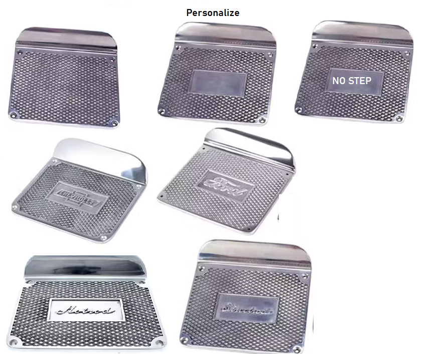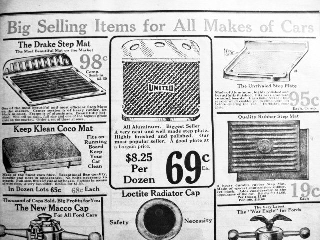 Larry, IMHO you are incorrect.They were offered by many concerns as an era accessory item in many styles. Haven’t you been following Tom’s incredible photos? Original T owners lavished their lizzies with accessories. I was faced with the same problem, those shiny new ford script step plates were installed on one of my vehicles. My solution was to find a matched set of 4 originals to replace them. I like period accessories, AND I love the challenge of finding uncommon things. Probably a wash as to filling up a bunch of mounting holes, and I love the result. AND, if you like step plates, they can be easily installed without drilling ANY holes. %100 reversible if you move the auto to someone who doesn’t want them.