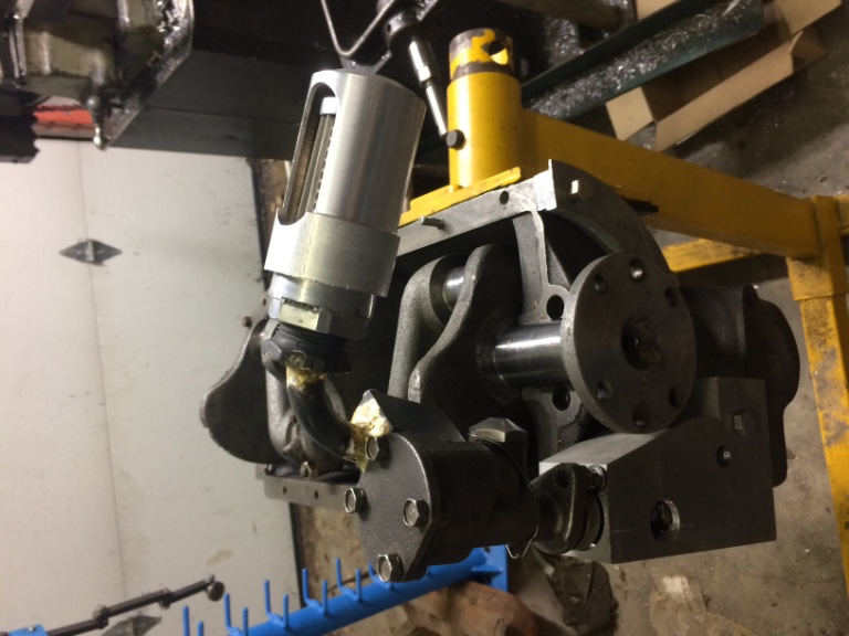 The thrust surfaces on the rear main are machined out of 660 bearing bronze and attached with machine screws.