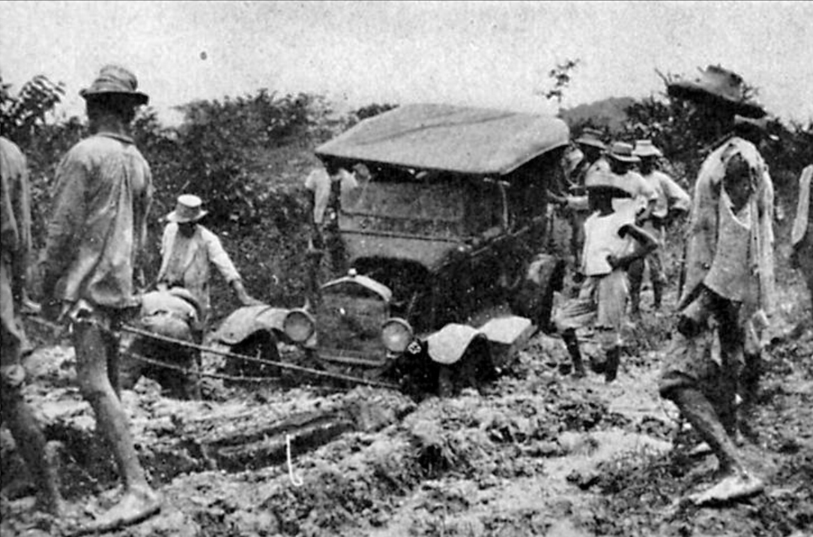 In the fifth picture at the gas station, there is a woman sitting in the front seat on the side where the gas tank filler is usually located. I wonder if they had a filler neck on the tank or that picture was just posed, and they were actually not filling the tank?