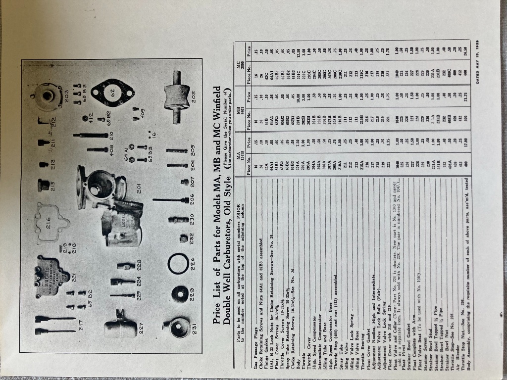 The catalog shows “old” and “new” style model M. I’ve only ever seen what I am confident was potmetal model M’s... but is it possible that the “old” style could have been aluminum like the predecessor model V and H carbs...? I’m intrigued that you were able to weld yours