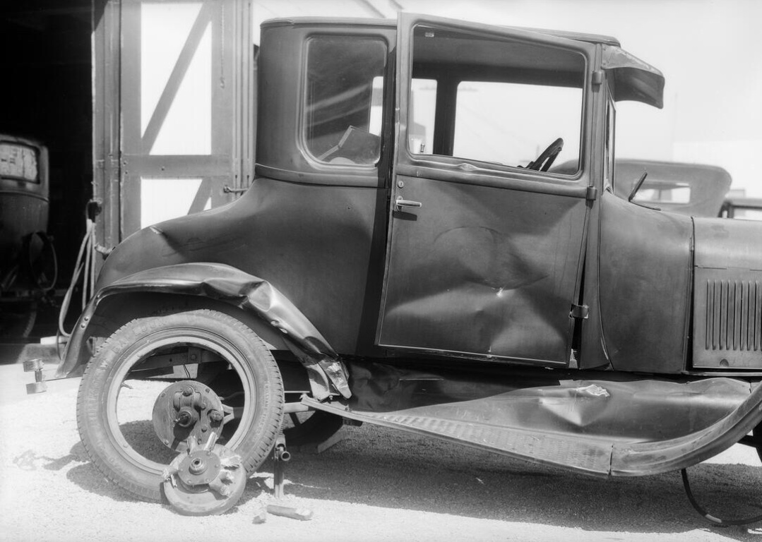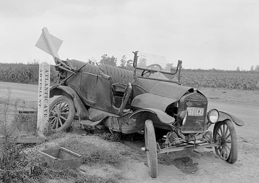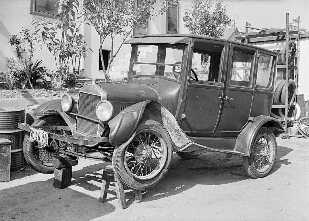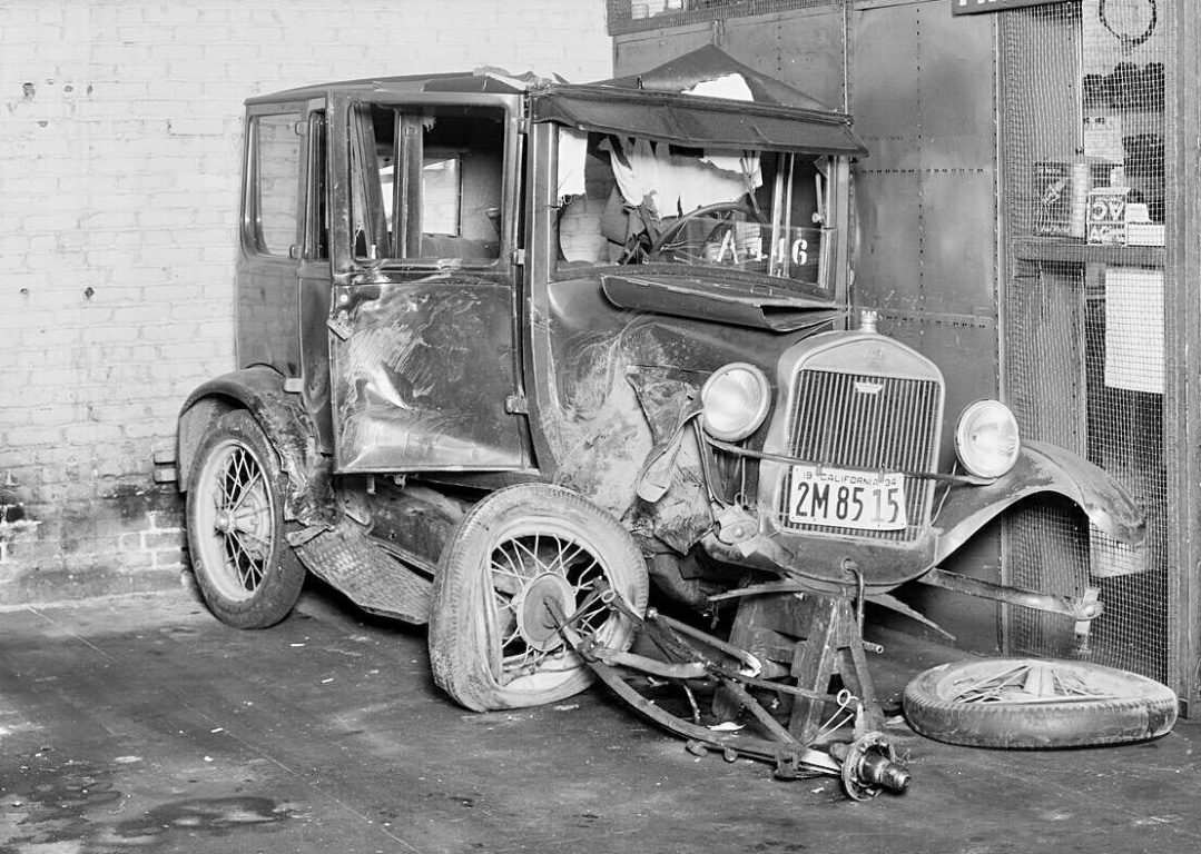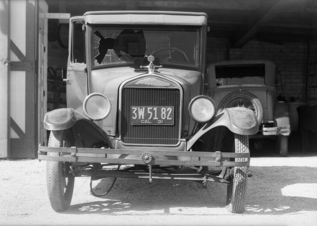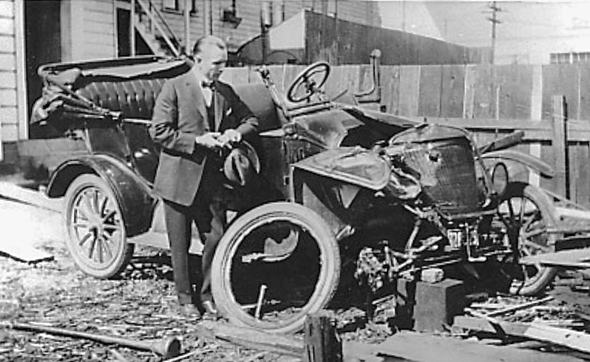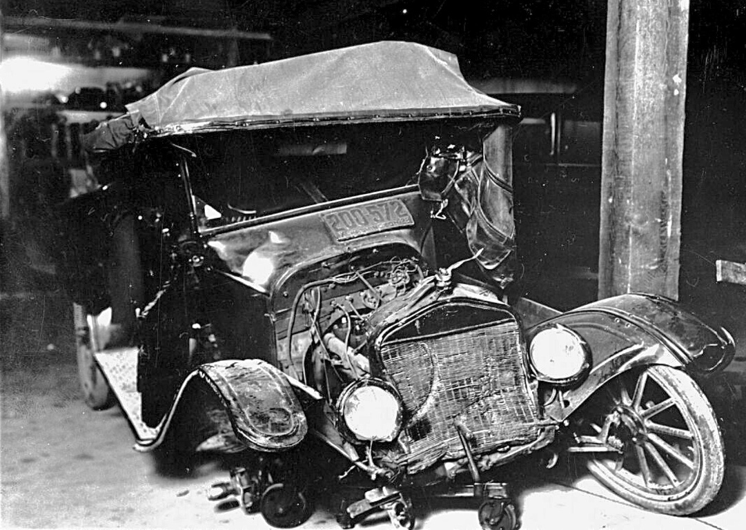 A close up of the nearly new 1917 So Cal Edison Ford that hit the 1913 Hudson. The house directly behind the Hudson still exists, at the intersection of Sunset and Gallardo in East LA.