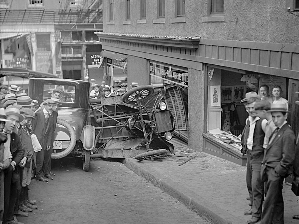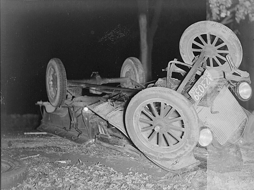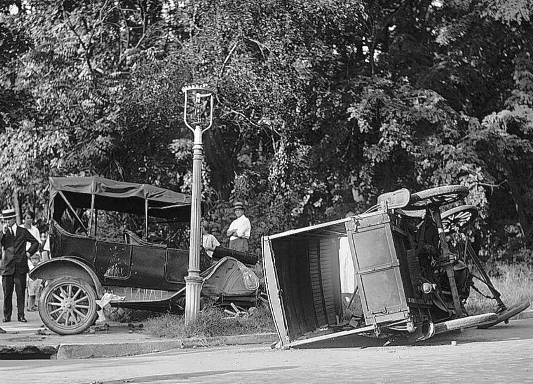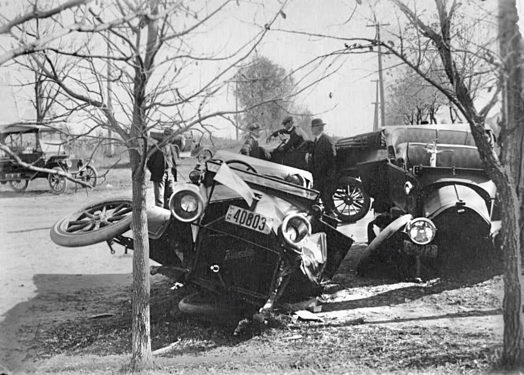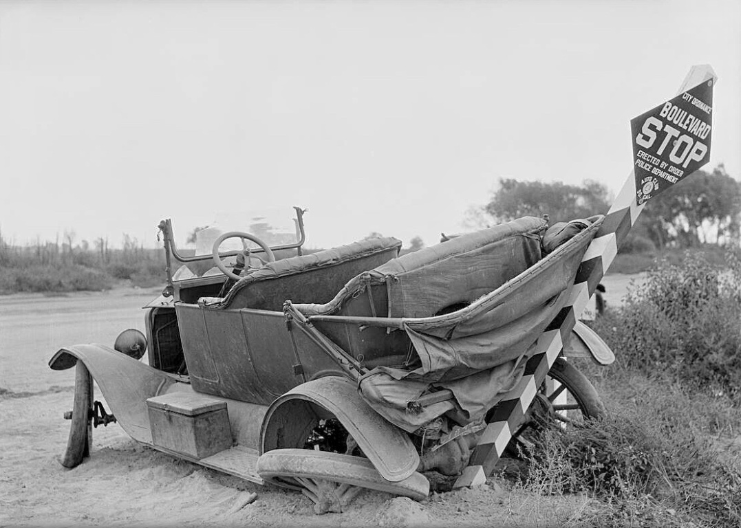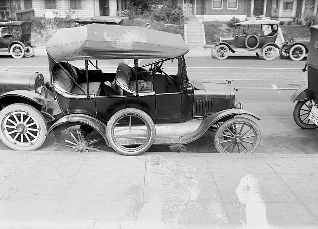 A close up of the nearly new 1917 So Cal Edison Ford that hit the 1913 Hudson. The house directly behind the Hudson still exists, at the intersection of Sunset and Gallardo in East LA.
