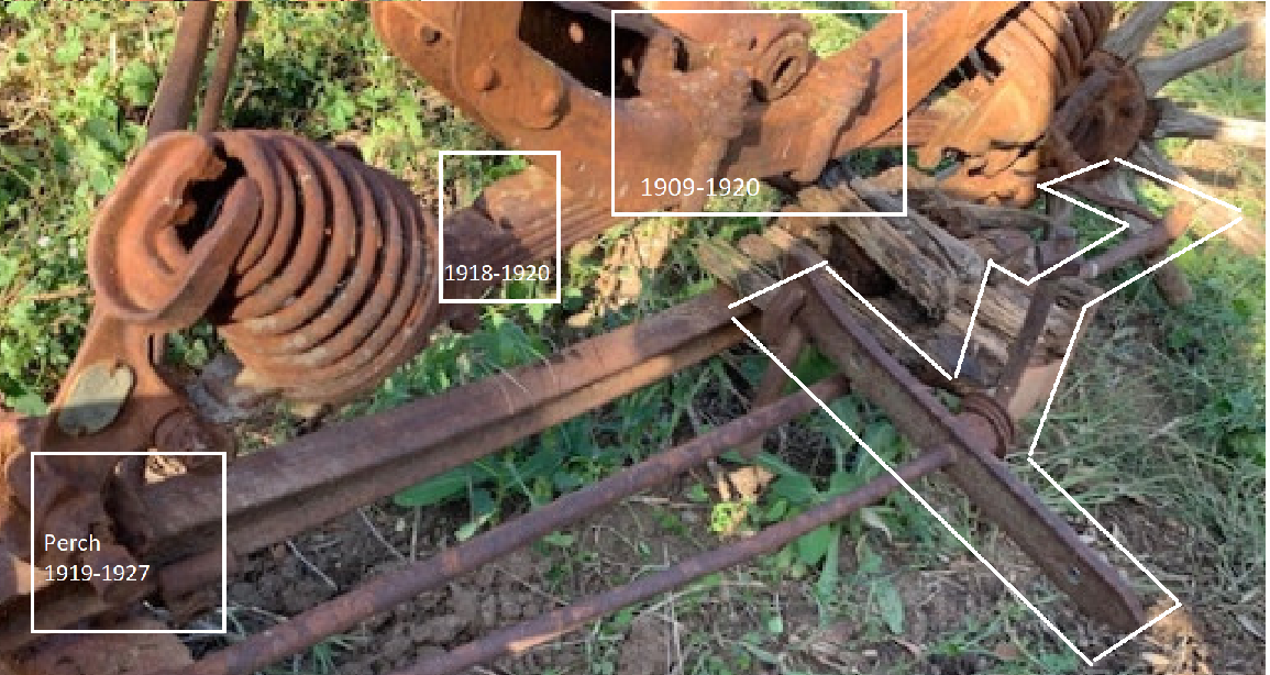 4) If we were to see a picture of the rear cross member and it extends pass the frame rails then it would point to mid 1913 to 1916. If the cross member stops at the frame rail, particularly if it still has the early body mount brackets, then it would point to pre mid 1913.