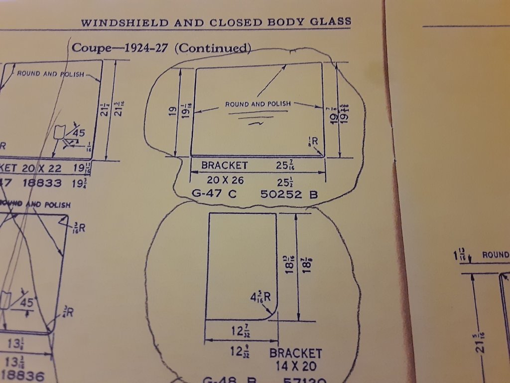 I am replacing the glass in my 1927 coupe. I have taken the pieces to my glass shop. What I need help with is the size of right door glass.