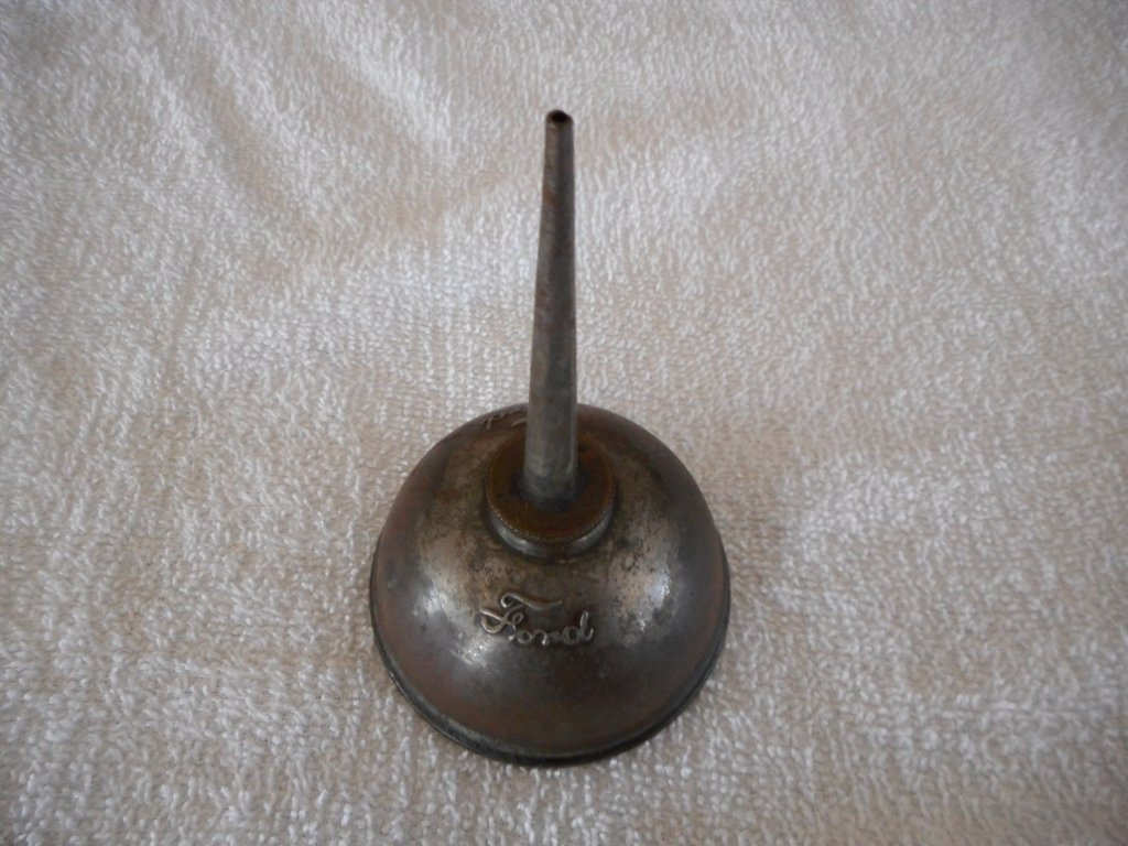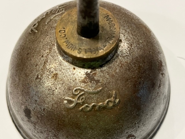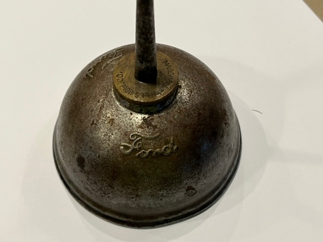 Russ Furstnow posted a wonderful article on tools. I agree with most of it, but disagree with the oil can photos. I emailed Russ, and he encouraged me to post the photos of the early oil cans in my collection. The Maple City oil can is the actual oil can pictured in the parts books. It has the Ford logo in two places just under the neck. The next oil can was made during the same period by Noera. It has a larger neck than the Maple City one. The threaded part of the neck on the Maple City can is made of brass, and the neck on the Noera is larger and made of steel. Both of these oil cans still have most of the original plating.