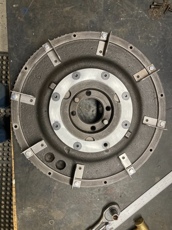 I'm running a full length Model B crank with a rear driven VW oil pump and full oil pressure. Before I drill and tap all the holes in the flywheel for the slingers (I had to use this shorty style, thanks Dan McEachern, to clear the oil pump), I thought I'd solicit some advice. With the slingers I'll get oil to the transmission bands, without them I'd have to plumb a separate oil line from the relief valve bypass to the transmission. I prefer to run the bypass oil line to the timing gear (a shorter line than to the transmission) and allow the slingers to take care of the transmission. Your thoughts? Thanks