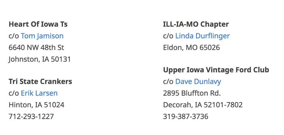 I strongly suggest you contact a nearby Model T Club. Invite them to take a look at your car and listen to their suggestions. Even if the club itself isn't real close I bet they have a member who is. You'll find Model T people are very willing to help each other out....it's our "thing." One of the greatest parts of T ownership are the social aspects. Touring, gatherings, group work sessions, it's all part of the experience. I've attached the contact info for MTFCA and MTFCI Chapters in Iowa.