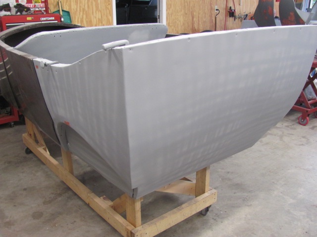 I had anticipated it being supported during painting as shown in the second photo. The paint/body shop has a device that they use to bolt a car body to when they are working on it. This allows them to put the body in various positions as it is worked on. My painter has indicated that he like to put the coupe on it for painting. It would facilitate painting the underside and would allow the body to be moved in the shop as the work proceeds, if needed. I assume it would be bolted at the coupe's body to frame connections.