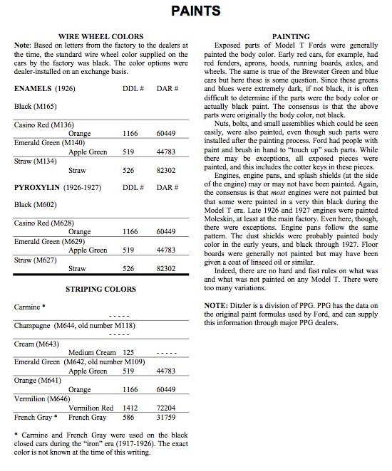In the MTFCA Forum search box, do a search for “wire wheel color code”. A lot of threads for 5his Model color will come up from which you can select the one that is the most helpful. Jim Patrick