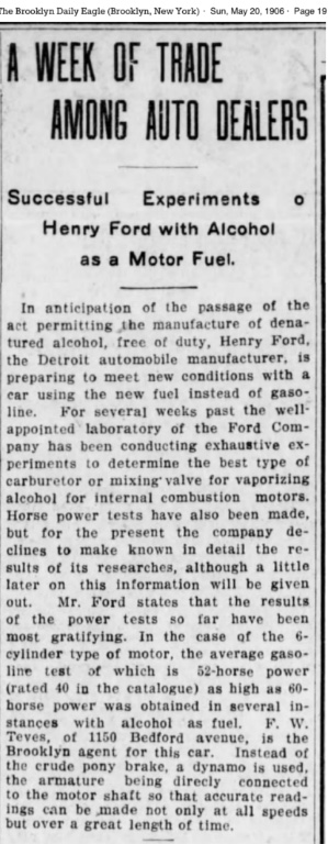 I believe new oil field discoveries and splitting up Standard Oil may have tabled ethanol promotion at the time (memory?).