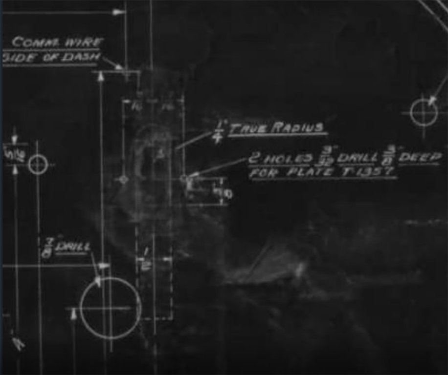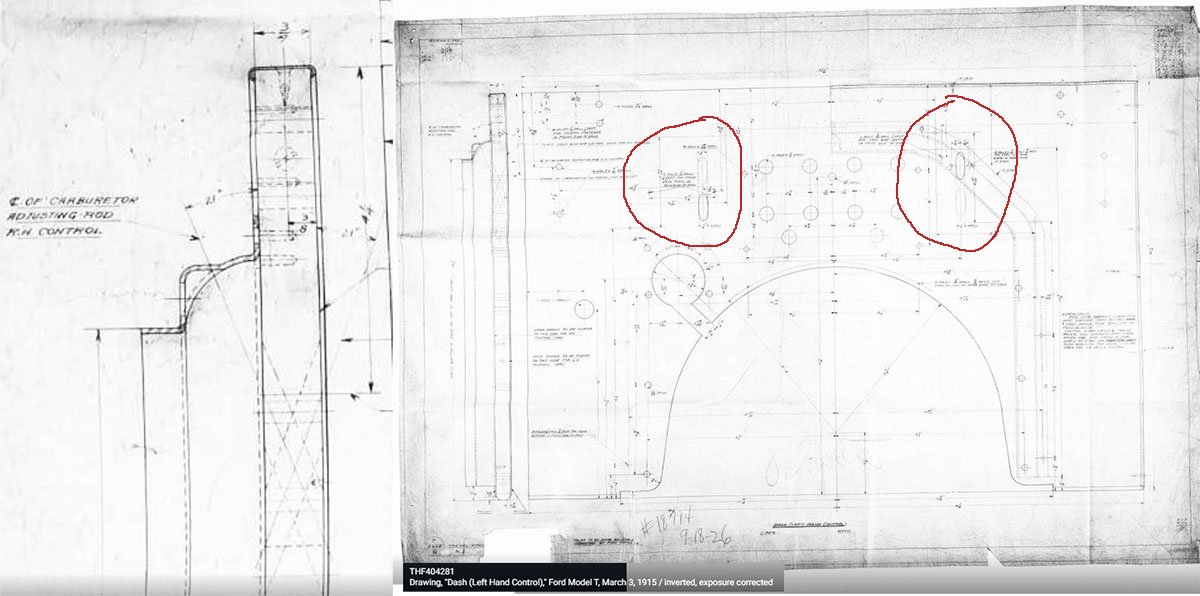 To add to your frustration, I found an October, 10th, 1916 drawing with a different configuration there. It is not clear but presents a later configuration. Here is a March, 3rd, 1915 drawing. Although it is of the square dash before the cowl was added, it shows the angled holes on both sides of the dash. T
