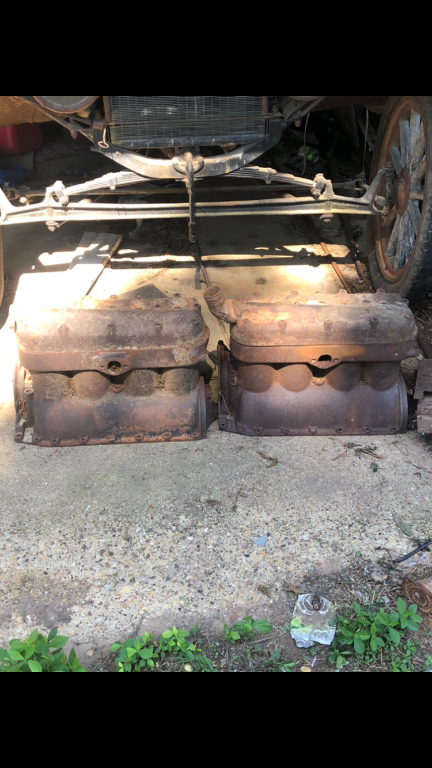 I’ve got a start to one. I don’t know anything about it really. It’s a late model, it came with 2 blocks and a 4 dip pan, lots of stuff, fellows, bands, steering column, even the straps from the back of the hogshead to the frame. I’ve got a late model transmission already. I just got it today but it’s about as much of a T as I ever get because I enjoy putting them together so here I go again. I’ll see tomorrow if the numbers on one of the blocks matches the frame. TT’s also had numbers on the frames also in 26-27 I suppose. I had to go to high school graduation after unloading it so I didn’t get to sort through it all.