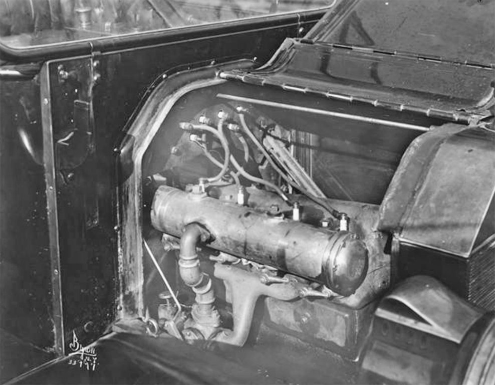 The way the head appears to be hollowed out at the same curvature of the long cylinder, the cylinder and head were likely made for eachother. Though it was obviously an early Model T accessory, I have no idea what it does, unless… I used to spray water into the carburetor of my 1974 Camaro to clean the cylinders of carbon. If I had to guess, I would guess the the tank is equipped with 4 adjustable injectors. One to each cylinder to inject a spray of water into the cylinders to keep the cylinder free of carbon. The long cylinder, positioned close enough above the head to heat the water, would provide hot, finely atomized spray injected into each cylinder to blow out the carbon. There appears to be a valve fitting just forward of the carb with a control rod through the firewall allowing the driver to open a butterfly valve, in order to direct some of the intake air into the long cylinder allowing the injection of water into the cylinders, when desired. Jim Patrick