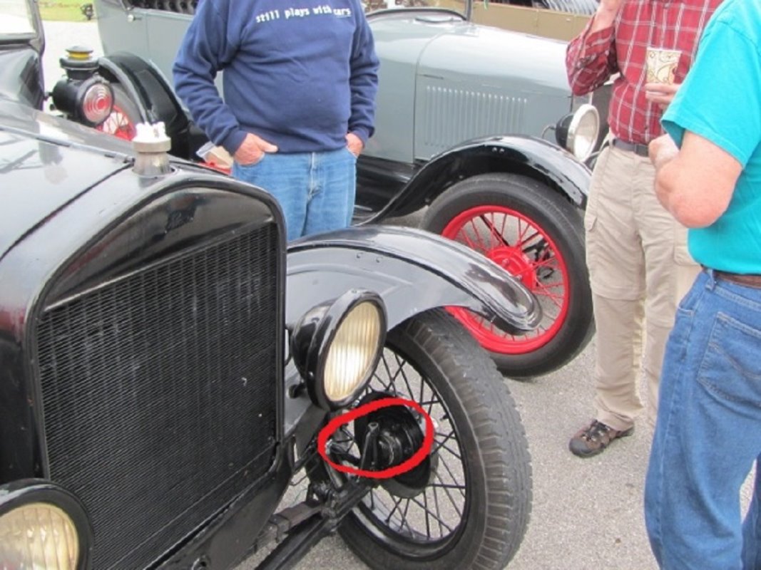 On a recent tour I parked next to this T that had adapters made to fit wire wheels to wood hubs, as I was casually looking over it,