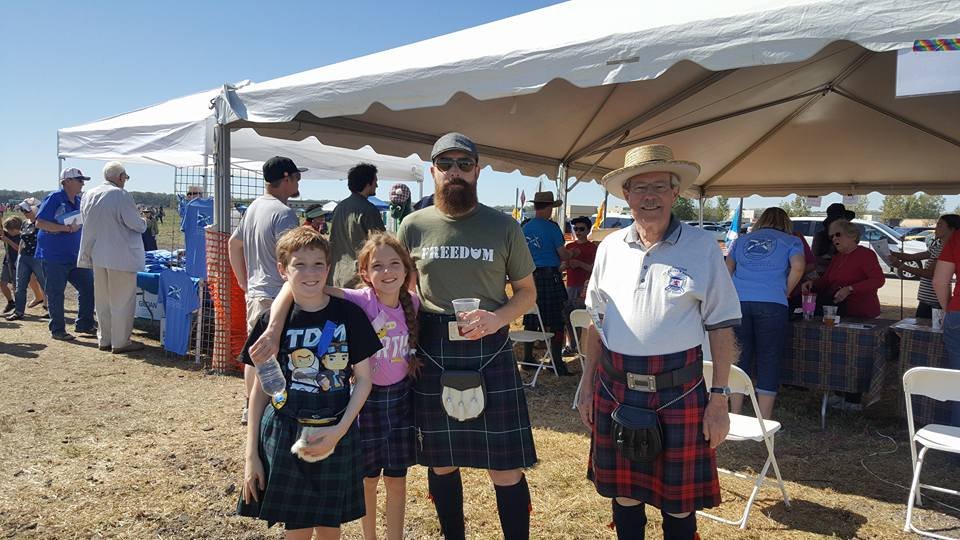 Oh I dunno. This was five years ago at the St. Louis Scottish Games. (Me, my son-in-law and my grandtwins.)