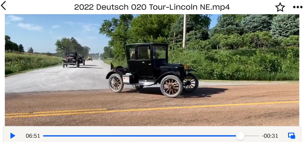 This video shows all ten, in their five T’s, heading west onto U.S. Highway 6 just west of Lincoln after leaving Myron and Barb Smith’s place this morning. Just as on the original Ocean to Ocean race in 1909, there’s a Ford Model K piloting the start. As it should be…..