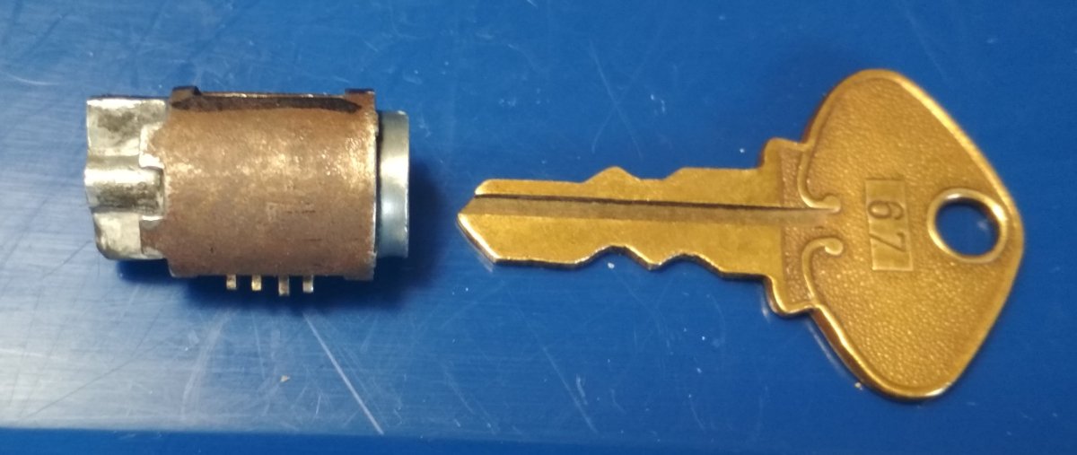 After disassembling everything I found the lock cylinder (tumbler) was missing 2 of the 4 wafers. The rectangular end of the pot metal cylinder wasn't so rectangular anymore - a chunk was missing where it fits into the fiber contact piece. It worked but had some play when turning to mag.