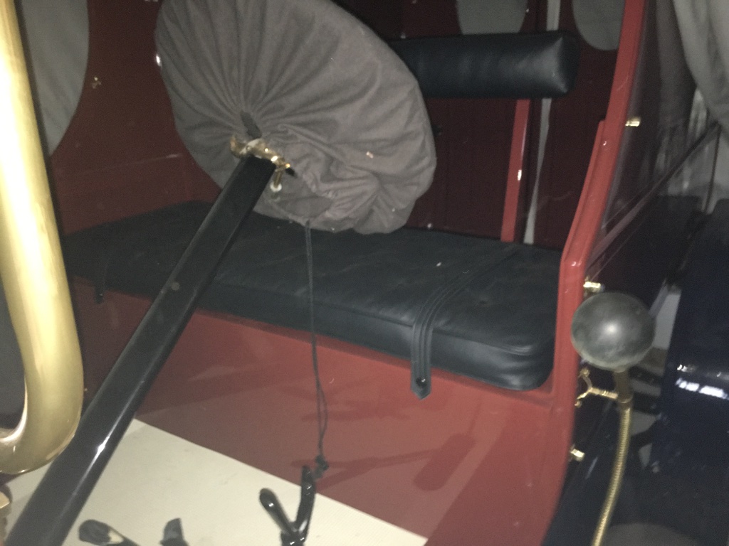 This is original 1912 mother ‘n law seat showing the leather strap, the male fitting seems shiny like brass, can’t see the female but could be either a glove snap fastener or a buggy loop type. A brass Murphy type common sense fastener would be period too. Certainly not a snap lift the dot, those were avail around 1920 or so.