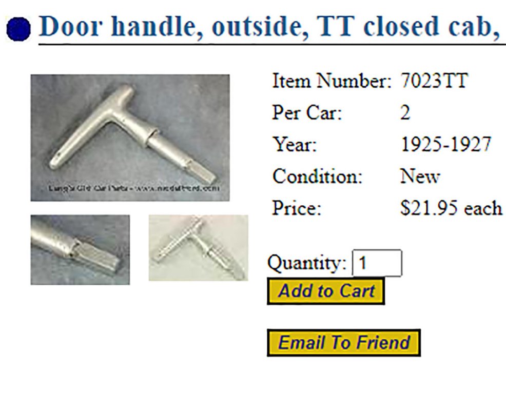 I recently added a number of handles to my collection thanks to ModelT Matt. Some are similar to what Rich Eagle posted above.