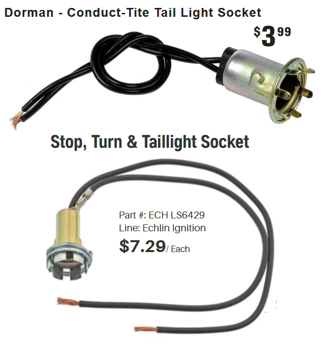 You don't need anything fancy. I bought bayonet sockets from NAPA, but this socket illustration is from Superbrightleds.com, so they carry them also. I replaced the tail lamp and side lamp burners with this type of socket, and secured it with two small screws, nuts, and washers. I ran the wire through the hole where the wick raiser went. Other than removing the burner, no modifications were made to the original kerosene lamps. I used two filament LED bulbs in the taillights, and a conventional one filament bulb for the front turn signal / side lamps. The conventional bulb in front gives enough resistance to make the flasher work properly. The LED taillights bulbs allow me to run taillights full time, if I choose, with a low current draw. I run the lights from a small 12 v battery. I found it helpful to run a seperate ground wire from each lamp to a good ground on my car.