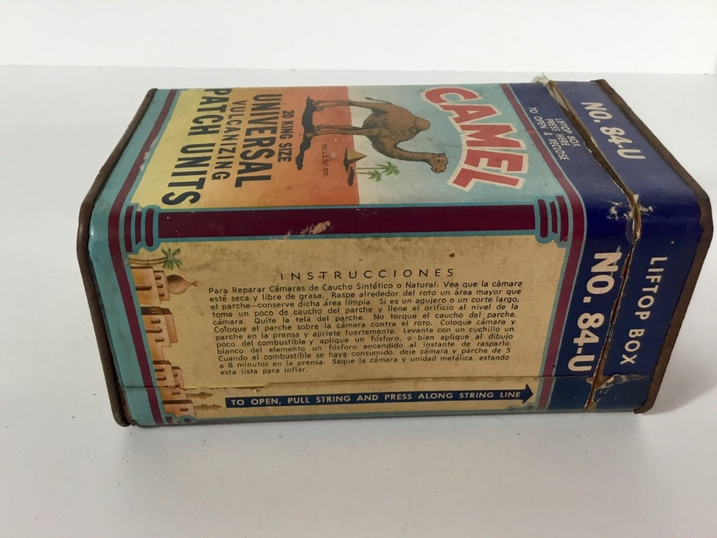 Back at it again today I discovered one tube that had a leak in an old red patch. I may have put it on 30 years ago. Much of this nonsense is in the name of seeing what I can get away with as much as saving these tubes. Patching patches probably isn't the best but while this one is still holding I gave it a try. Using a tin from one of the old vulcanizing patch units and some gasoline I clamped and heated the new patch in place. My Camel quick cure tube gum 10-036 instructs me to "vulcanize for five minutes at sixty pounds steam pressure (307 F.)." "...cure 8 to 10 minutes at sixty pounds steam pressure." I'm guessing steam patching was popular at some time but can't find much on the internet. I'm sure some of the old books and manuals tell all about it.