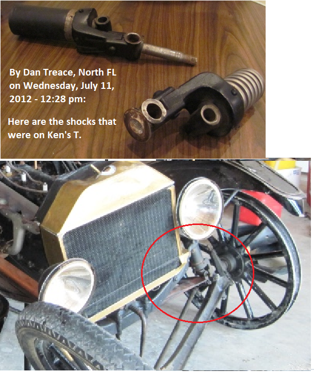 That style of tall tower/spring shock absorber should NEVER be used on the front end of a model T! NOT EVER! Regardless of original manufacturer, whether forged or cast, one-piece tower or multi-part tower? NEVER!