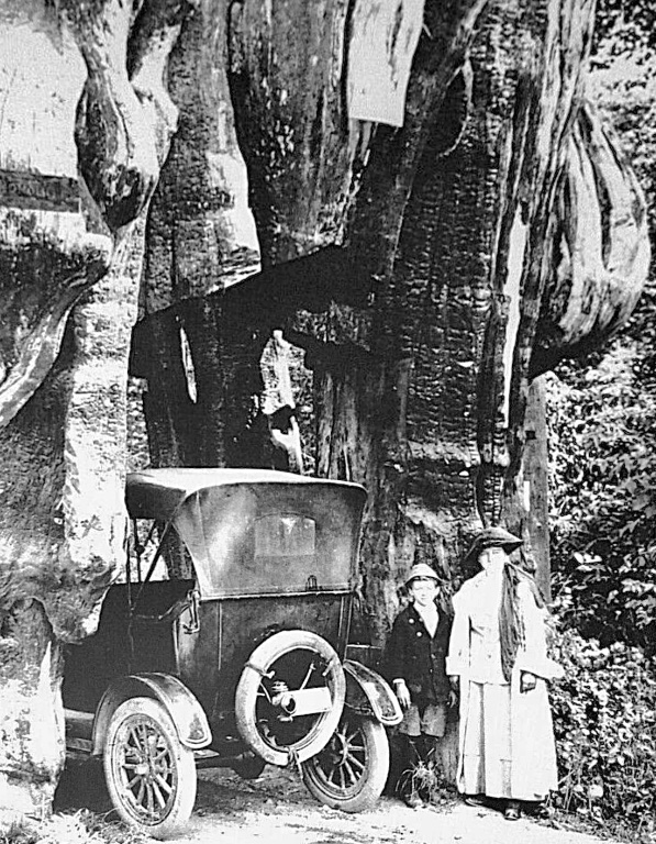 I wonder if the picture showing a car going into a tree trunk was taken at Yosemite Park. I saw that tree. Unfortunately, it fell in winter of 1968 - 1969, as I recall.
