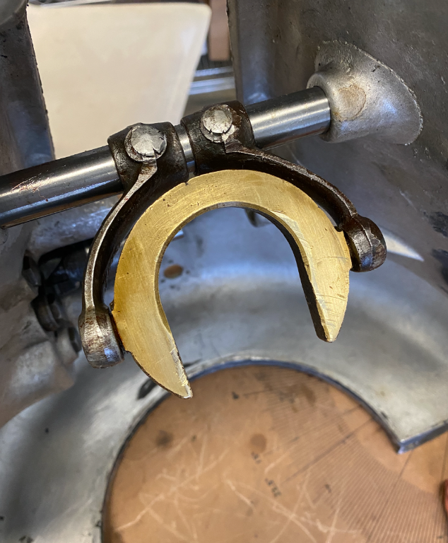 The clutch shaft looks like it new, the previous owner probably put a new slightly over sized shaft as well as nos fingers and horseshoe. One of the finger may be bent or the horseshoe a bit to wide? Sometimes nos parts were not used because of a mfg defect.