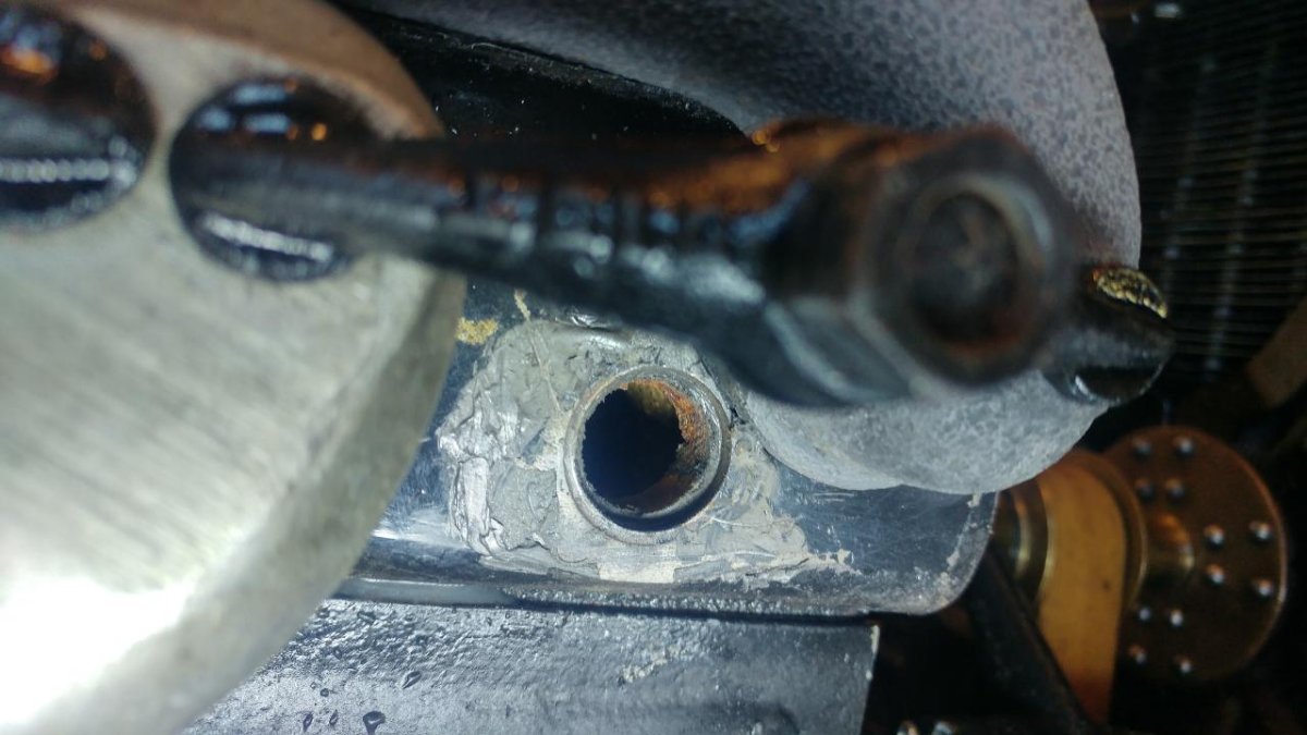 • I definitely want to use either J B Weld's "Liquid Metal" or High Temperature Silicone to ensure that the new plug is watertight. What is better? JB Weld will harden and is good for 550°F, the silicone will remain a bit elastic.