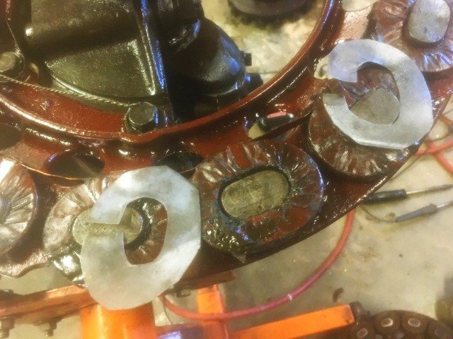 Since the engine is out now is the time to figure out why the mag is putting out a fraction of the AC voltage it used to do. After a lot of head scratching and chasing after the problem with my VOM I finally hit upon a solution... I pulled all 4 mags I had accumulated at swap meets, arrayed them on the floor and went about testing in order to find the "new" mag for Rusty... none of them were good! So the next step was to chase down where the short is. Using my 2A 6V/12V charger I energized the original Anderson rebuilt mag and chased down which coils were energized.