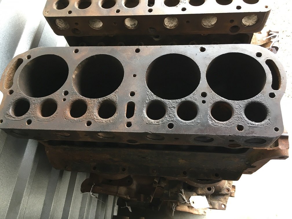 I used a goodly sized metal bar as a punch rod to bang on the pistons from the underside, resting the rod on the piston pin area. If you can eventually get the piston to budge just a bit, you are home free. Just keep squirting penetrating oil around the piston as you bang it up and down to increase its range of movement. As for the valves, first remove the pin holding the spring seat so the valve isn’t held down by the spring. As Joe Bell said punch the valves up from the underside. For the valves having their heads above the surface of block use channel lock pliers to grab the heads and apply a twisting force. Again, if you can get the valve to move using a drift punch and/or the channel locks, then use the oil and go up and down, back the forth to wiggle the valve out.