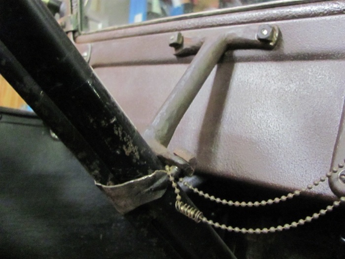 Nellie, my early '23 Cut-off, with steel firewall didn't have the bracket, as it was built before the new dash panel bracket. So found this 'home forged' bracket at Chickasha swap, the ole farmer heated up the forge, and split and bent this iron piece. The surround metal part is from a speedometer bracket he used! Crafty folks back then!