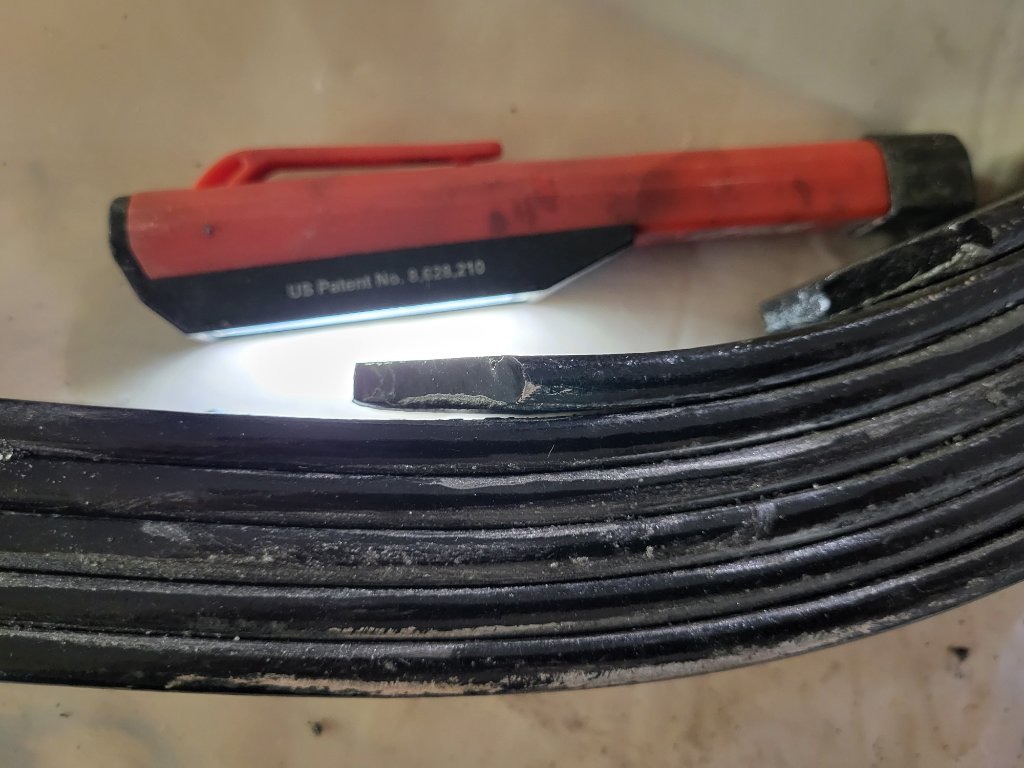 There are 14 end of leaf locations on the rear spring. At 8 locations, there is good contact. In the other 6 locations, there is a "gap" as shown in the attached 5 photos (did not include the sixth location due to restriction to five photos per post -it is at the end of the leaf that I straightened).