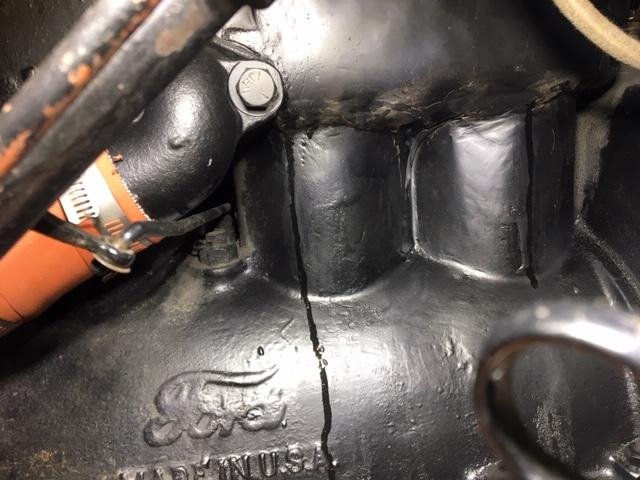 Here's the news as of today, the evidence shows that the motor has been recently rebuilt with new .060 pistons and valves, and is very clean, and the two weepy spots looks to have been repaired at some point and tiny holes have re-emerged. The head was clean and crack free and so is the deck.