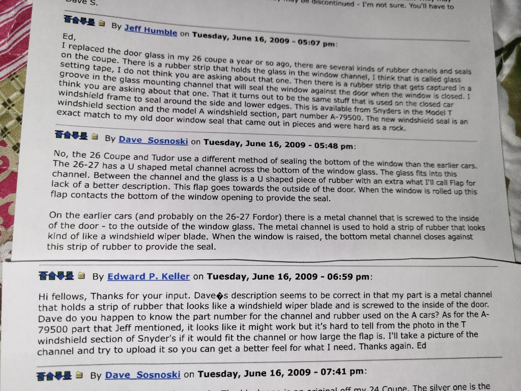 Here is a reminder of the photo you posted back in August, 2022, of the cross-section of the original door window weather seal which looks to be much shorter and stubbier than the rubber weather stripping you currently have installed. I think Scott is correct that, what you have is the 1926-‘27 weather stripping that spans the bottom of the windshield frame. It may work on you door window if you carefully cut it down to the dimensions of the original. If you saved the original piece, it would be easier to make it match. It would be easier to make the cut nice and straight if you slid it out and laid it straight and flat to cut it. Jim Patrick