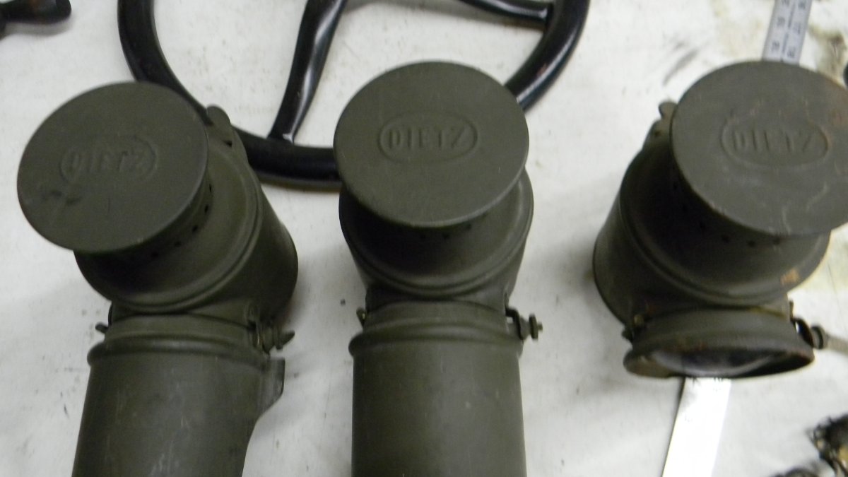 Though Dietz lanterns are still made(off-shore)- these look old and military (olive drab paint)to me. Most that I have seen and own are tinplate (rust resistance) with automotive cowl lamps being painted black. An exception was during WW2 when Dietz had to use terne plate and painted general purpose lanterns gray (I have just one) for rust resistance. My guess would be WW1 for ambulances and the relatively few trucks at the front - artillery and ammo was moved to the front at night by horses. I don’t know if airplanes flew at night, but there were were plenty of observation posts and observation balloons looking for targets - troops and field artillery dug-outs.