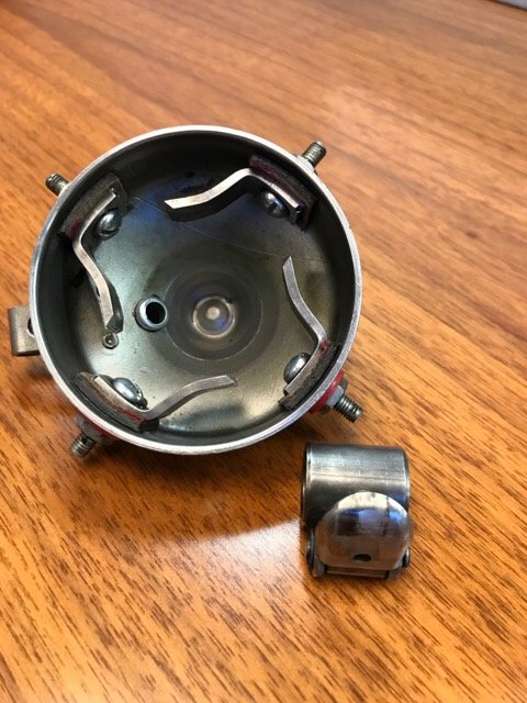 The common Ford style timer case has contacts imbedded in a ring, the rotor is a spring loaded roller.