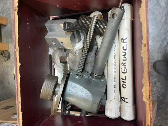 The gray “gizmo” is the feed for line boring equipment. Not necessarily rare or valuable but a good item if it’s not worn out. I’d be interested if it’s available and in good condition.