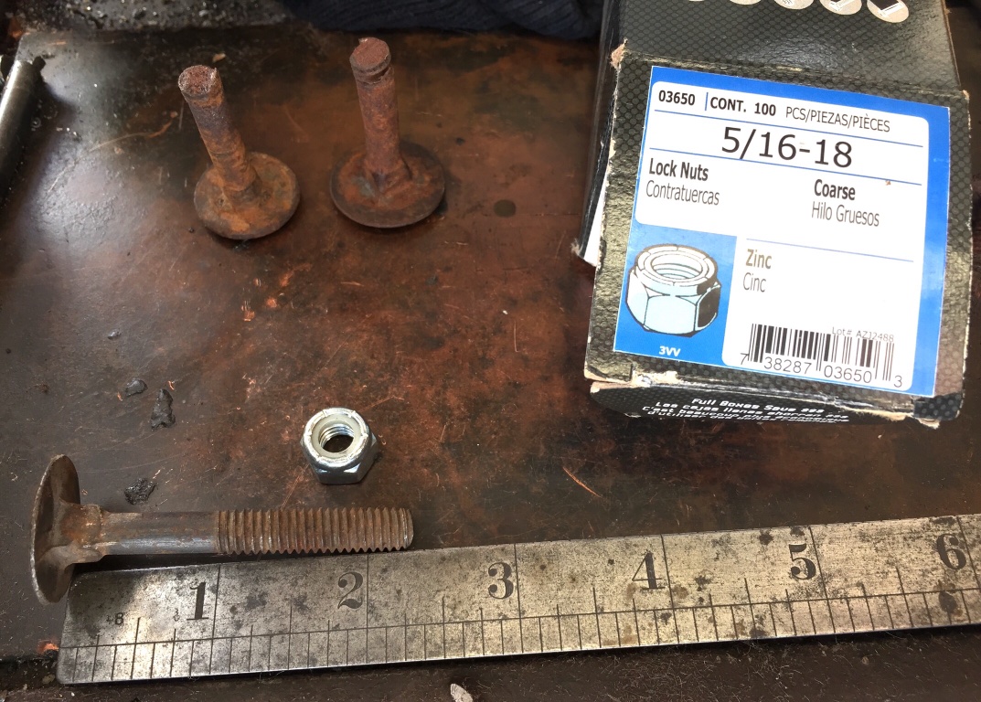 The project is stored offsite but here are two bolts (in top of photo) that I took off. I believe they were both used to hold a fender bracket. One has a square that you normally find under a carriage bowl. The other one barely has a rib. Is that a timber bolt? In any case one of them must’ve been replaced. Does anyone know what Martin Perry originally used? The originals were cut off by a previous owner. I happen to have one bolt that would work as a replacement. It is 2 1/4 inches long and 5/16 diameter.