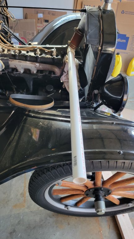 It would move some water, at least at higher speeds. Is the impeller as designed, or has it been repaired? From what I've seen, the T accessory pumps were not designed to be high volume pumps. The small diameter of the impellers, and inefficient volute design would only give a gentle flow. That was all that was needed or desired in a system with no thermostat, no pressure cap, and capable of operating on thermosyphon. A high volume pump would consume more power and would force water out the overflow pipe at higher speeds. A high volume, rope packed pump would also tend to suck air in at the shaft seal at higher speeds. A pump with excess volume capability works well in a thermostat regulated system with a pressure cap. The thermostat provides restriction, even when fully opened, and that choking effect throttles the pump at higher speeds, which provides some overpressure in the block and head while limiting the pump's power demand. The Model A pump is also intentionally limited as to volume, and another reason, in addition to those above, for soing so on the Model A setup is to prevent the pump from developing lower pressure in the block and head, which is the last thing you want to do.