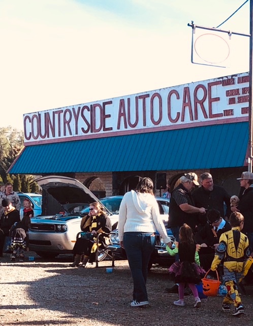 The local repair shop sponsored a "trunk or treat" again for the third year in a row. They invite the owners of special interest cars, so it's kind of a car show. They give the kids tickets to leave in a cup with the car they like best. The most popular car wins a trophy. It's well attended, and the kids have a great time. It's not really Lizzie's milieu, but she won the prize last year.
