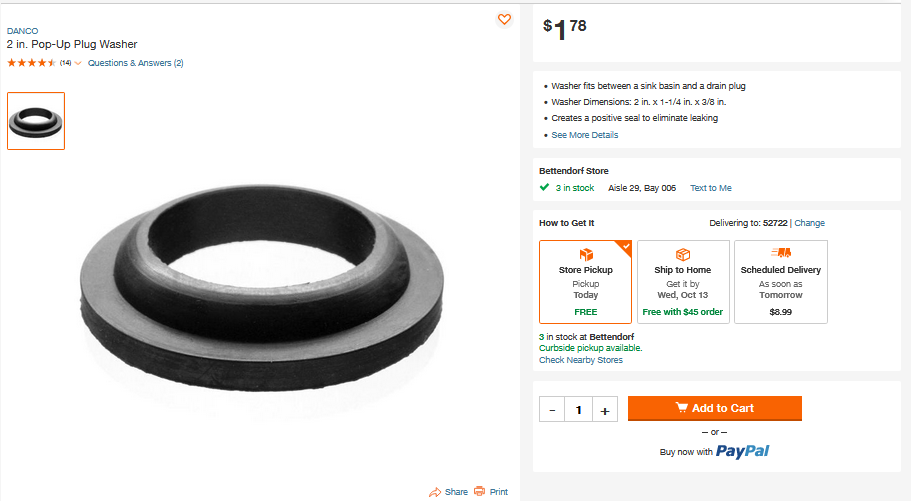 This is the gasket that Lang's mentioned that hardware stores sell - 2inch pop-up plug washer