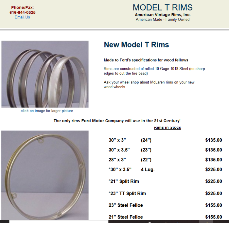 Vintage Rims NZ, I can find nothing about Model T parts even though their website lists Model T parts. Catalog appears all Model A.