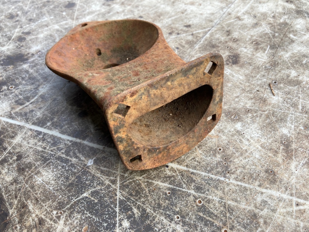 I believe it's a headlight bracket. I just can't place which manufacturer. I wanna' say like 1922 Studebaker... Does anyone else wanna' say Studebaker too?