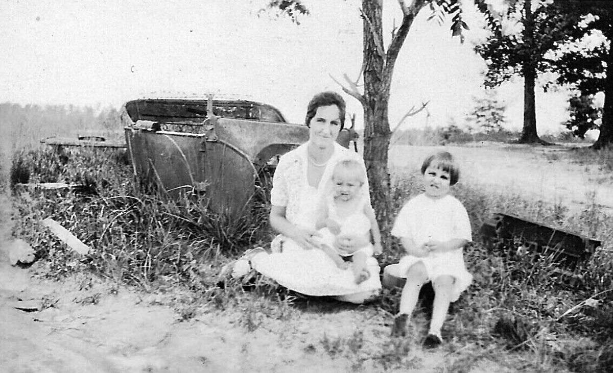 I don't think that car in the first picture just went to pieces. The two children are younger than that car has been there!