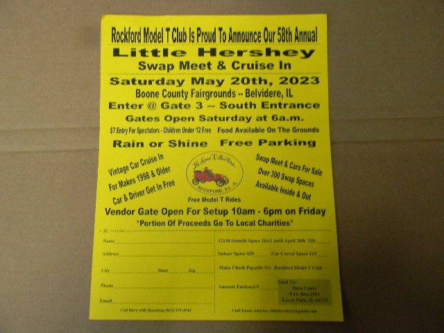 Join us at the Little Hershey Swap Meet & Bob's Sale May 20th, 2023.