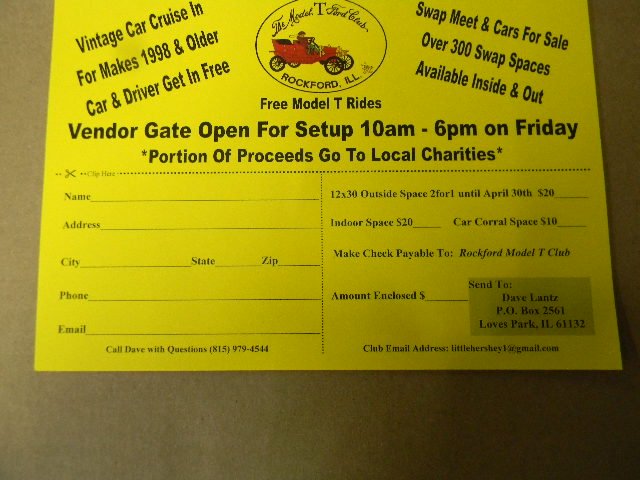 Questions on swap meet contact Dave @ 815-979-4544